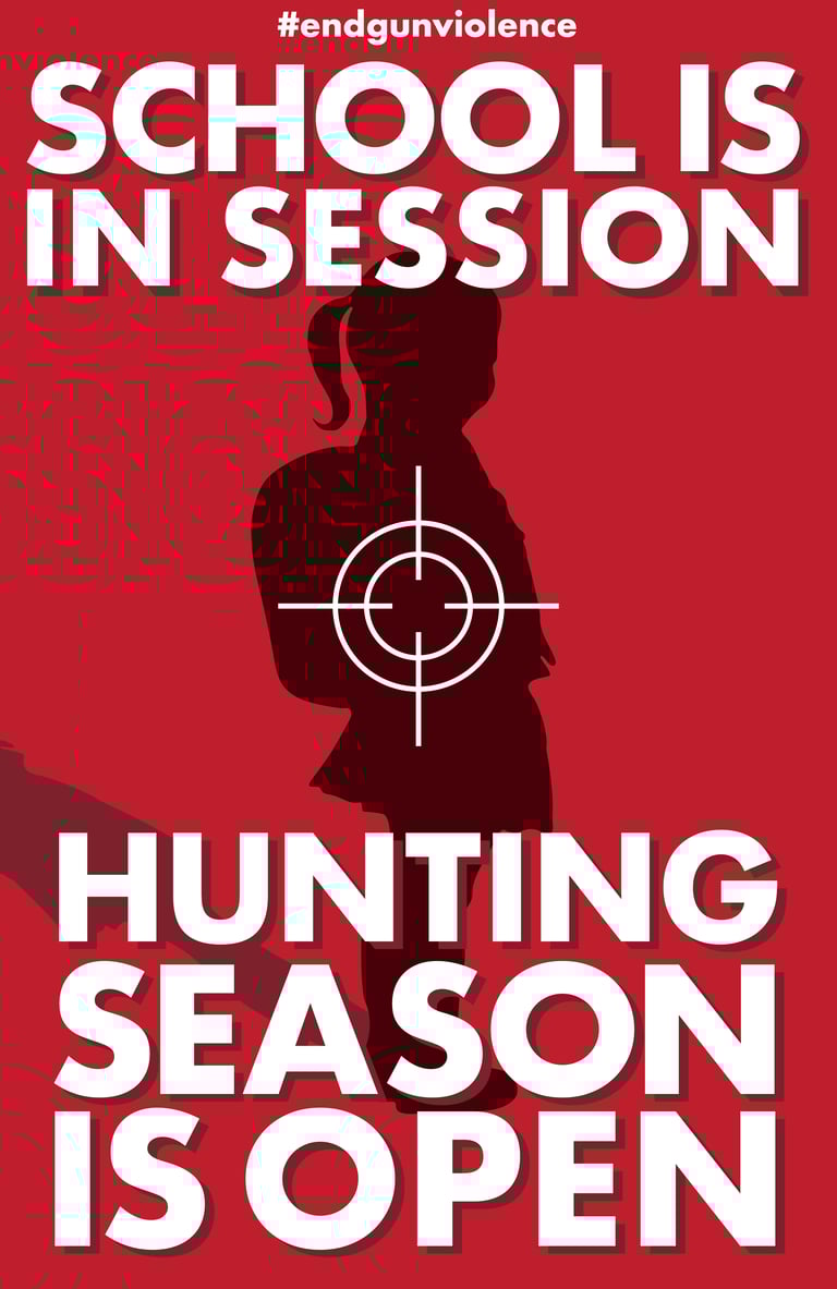 Classroom Casualties is a series based in the everyday reality of living in the United States. Guns are the leading cause of death for American children. The bold colors and text evoke a sense of urgency in the viewer. We are being forced to accept that classrooms are hunting grounds and we have no choice.