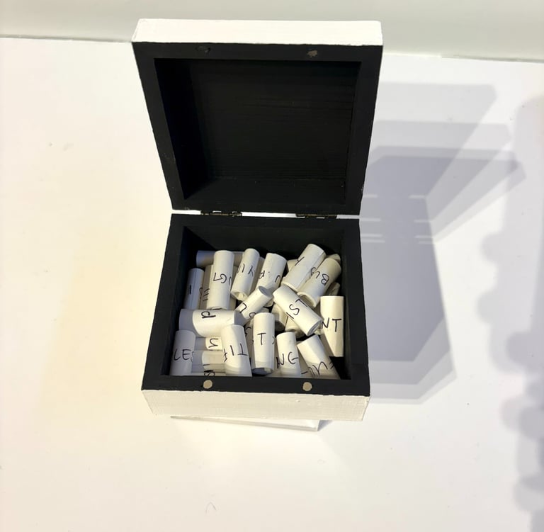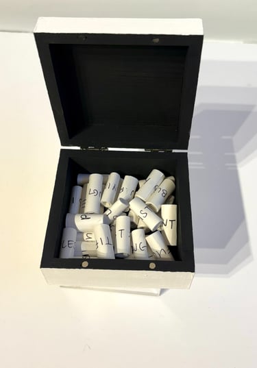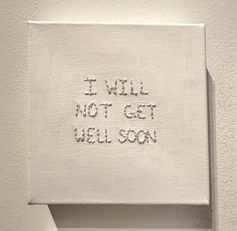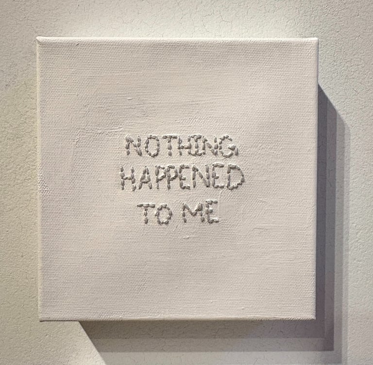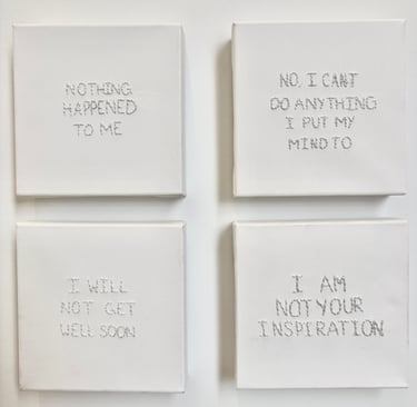 Across various mediums, I use contrast, repetition, and concealment to reveal pieces of myself on my own terms. Viewers were asked to engage with the work physically, implicating themselves in the invasiveness the work critiques. They became, in a way, unwilling participants. This body of work exists as both an exposé and cover-up, reflecting the ongoing struggle between the search for answers and the fight for autonomy.